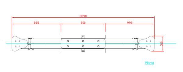 2,890 m comprimento x 0,781 m altura x 0,31 m largura