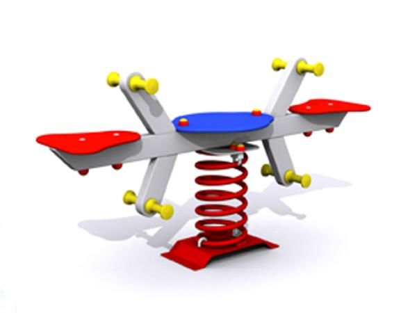 Os componentes da gangorra de mola dupla “Metálico” são de polietileno de alta densidade e de metal pintado no forno. Os parafusos são de aço galvanizado é protegidos com tampas de nylon.