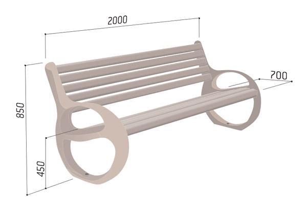 As dimensões do banco são de 200 cm (comprimento) x 70 cm (largura) x 85 cm (altura)