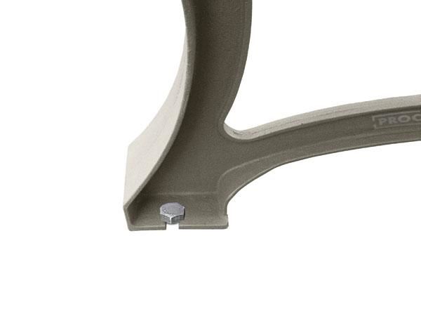- Estrutura de aço fundido e pintado sobre zinco. Acabamento do banco em gris metalizado.