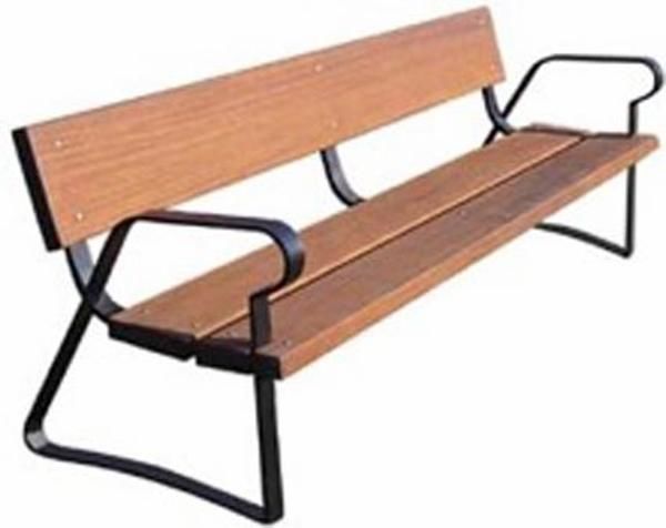 O banco que aparece na foto é de madeira tropical.