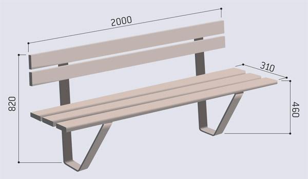 As medidas do banco são 200 cm (comprimento) x 31 cm (largura) x 82 cm (altura)