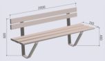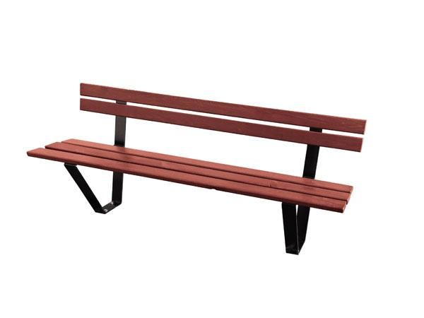 Banco de madeira de pino Class 4 com estrutura de aço dobrado. Esta combinação combina conforto com baixo custo.