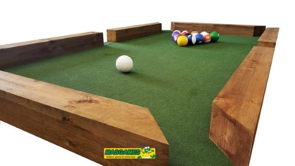 Bilhar gigante de exterior pensado para ser instalado em um hotel, um camping, um clube desportivo ou para ser usada por empresas de eventos.