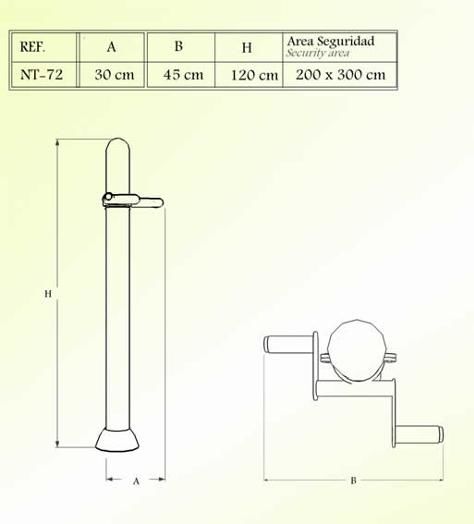 Medidas da área de segurança: 2,0 m x 3,0 m.