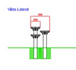 - Medidas exteriores: 204 cm (comprimento) x 57 cm (largura) x 35,1 cm (altura) no ponto A, 45,1 cm no ponto B e 55,1 cm no ponto C. Cada peça tem um diâmetro de 32 cm.