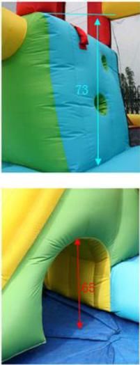 Medidas do insuflável montado: 4,00 m (comprimento) x 2 m (alto) x 2,75 m (largura)