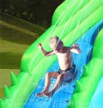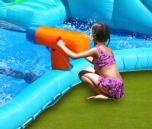 Um escorrega insuflavel em forma de Crocodilo faz de este simpatico escorrega o melhor para colocar no jardim da sua casa. Este inflável tem a opção de se conectar a uma mangueira para torná-lo num escorrega aquatico. Com o engraçado canhão poderam molhar aos seus amigos.