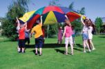O jogo do pára-quedas fomenta uma vasta participação por parte de todo o grupo.