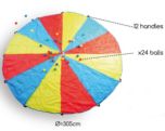 El paracaídas tiene 12 asas. Es un producto pedagogico con muy buen relación calidad precio.