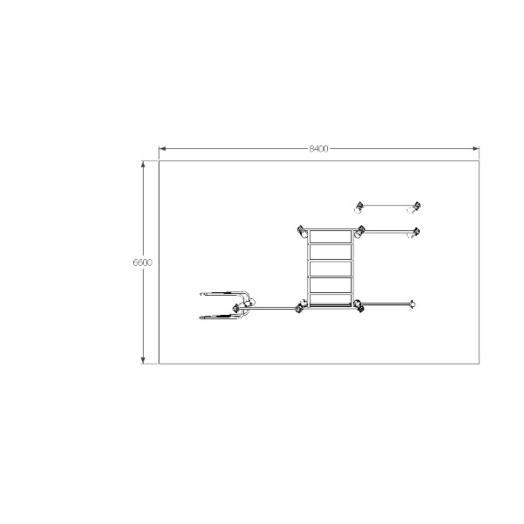 Medidas: 840 cm comprimento x 660 cm largura x 215 cm altura