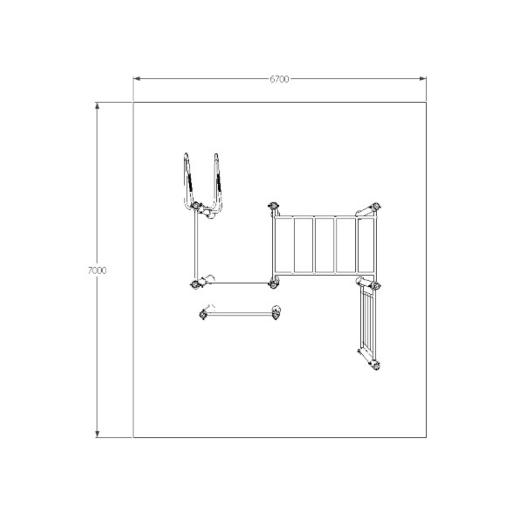 Postes de tubos redondos de aço galvanizado de 114 mm de diâmetro com uma base para a fixação. O resto dos tubos, também redondos, têm diâmetros diferentes: 32/38/48/60 mm.