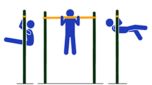 Levante-se, segure as barras com as mãos e tente erguer o corpo no ar, mantendo as costas firmes.