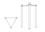 Postes de tubos redondos de aço galvanizado de 114 mm de diâmetro com uma base para a fixação. O resto dos tubos, também redondos, têm diâmetros diferentes: 32/38/48/60 mm.
