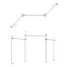 Postes de tubos redondos de aço galvanizado de 114 mm de diâmetro com uma base para a fixação. O resto dos tubos, também redondos, têm diâmetros diferentes: 32/38/48/60 mm.
