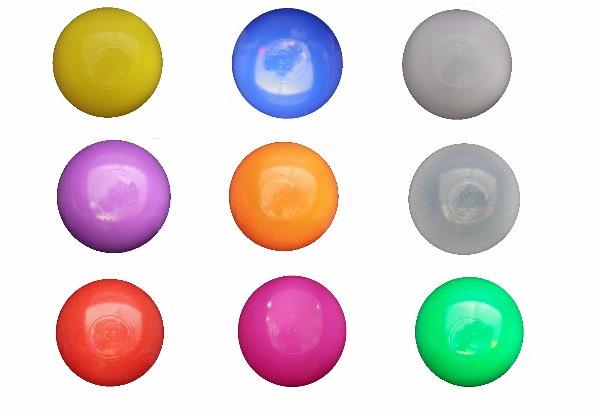 Caixa de 500 bolas sensoriais de 6 cores diferentes. Também inclui a cor rosa
