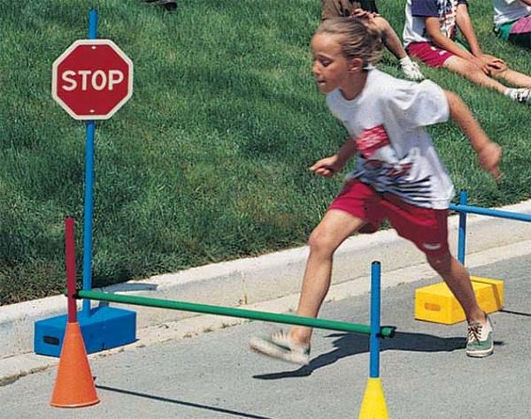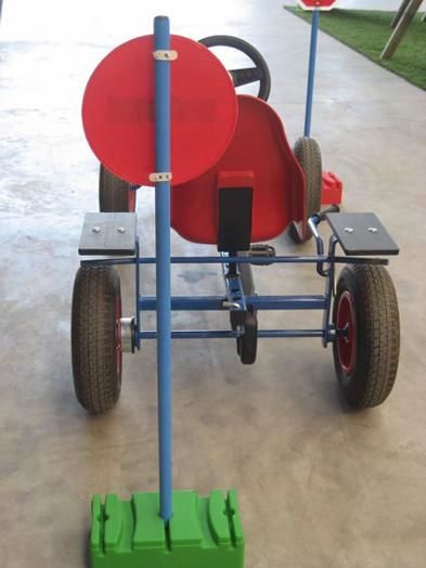 Set composto por uma bse quadrada e um pau para montar os diferentes sinais de trânsito.