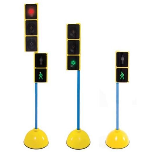 O conjunto é composto de um sinal luminoso para peão e outro para veículos, podem ser usados juntos ou separadamente.