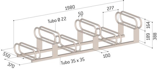 Os tubos de estacionamento de aço de 35 x 35 mm e 0,22 mm. Apropriado para todos os tipos de bicicletas, pois a separação entre os arcos é de 50 mm.