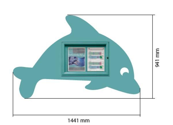 A vitrina de exterior golfinho tem uma medida para 2 folhas A4.