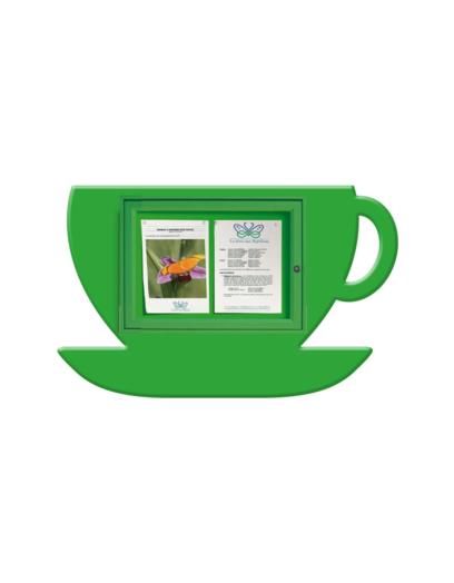 Vitrina de exterior em forma de copo de xícara, ideal para colocar o menu duma cafeteria, restaurante ou bar.