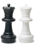 Peça de xadrez gigante de plástico composta de duas peças, a base e a figura. A base pode se rechear com areia ou água.